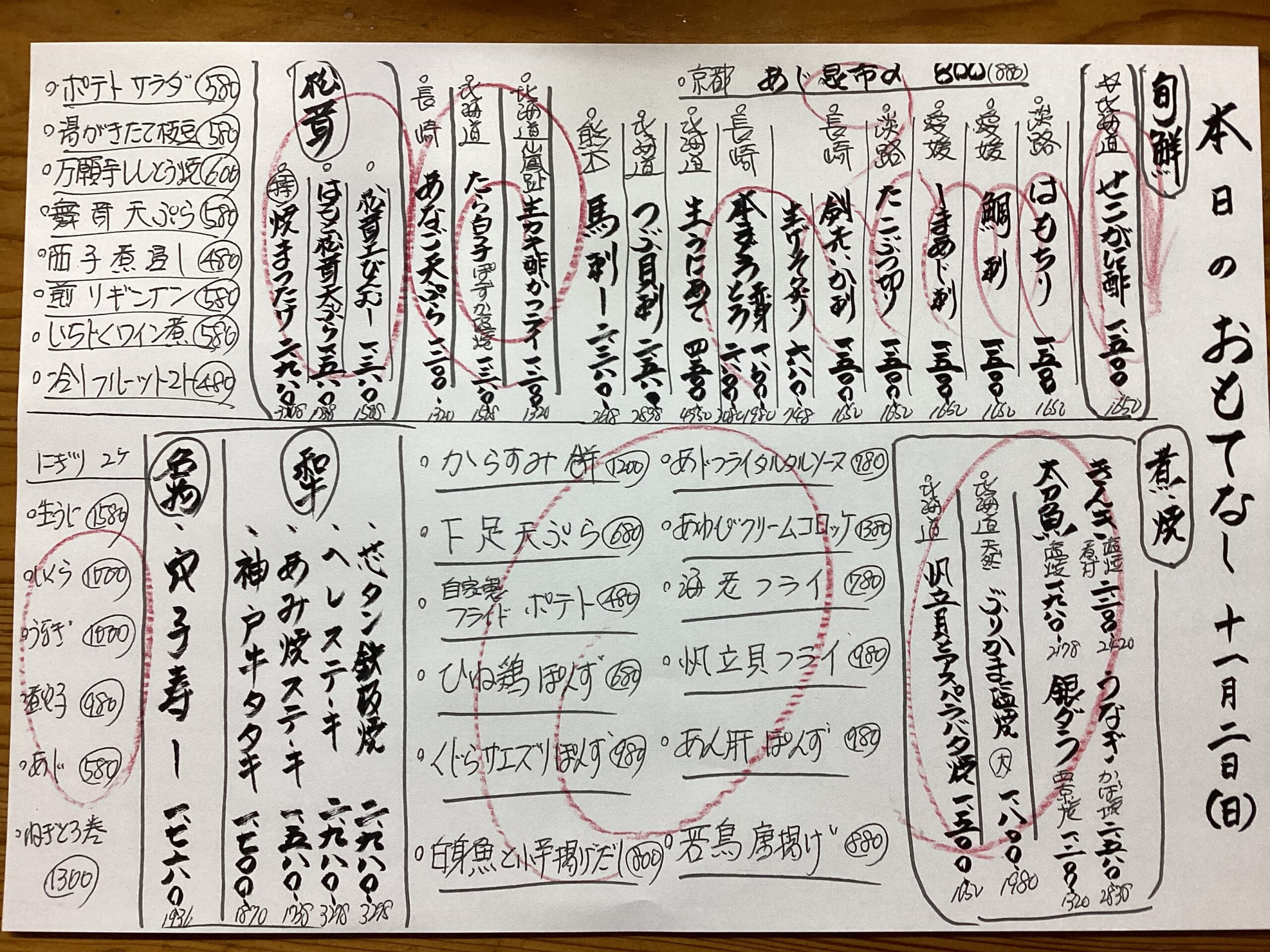 本日のおもてなし