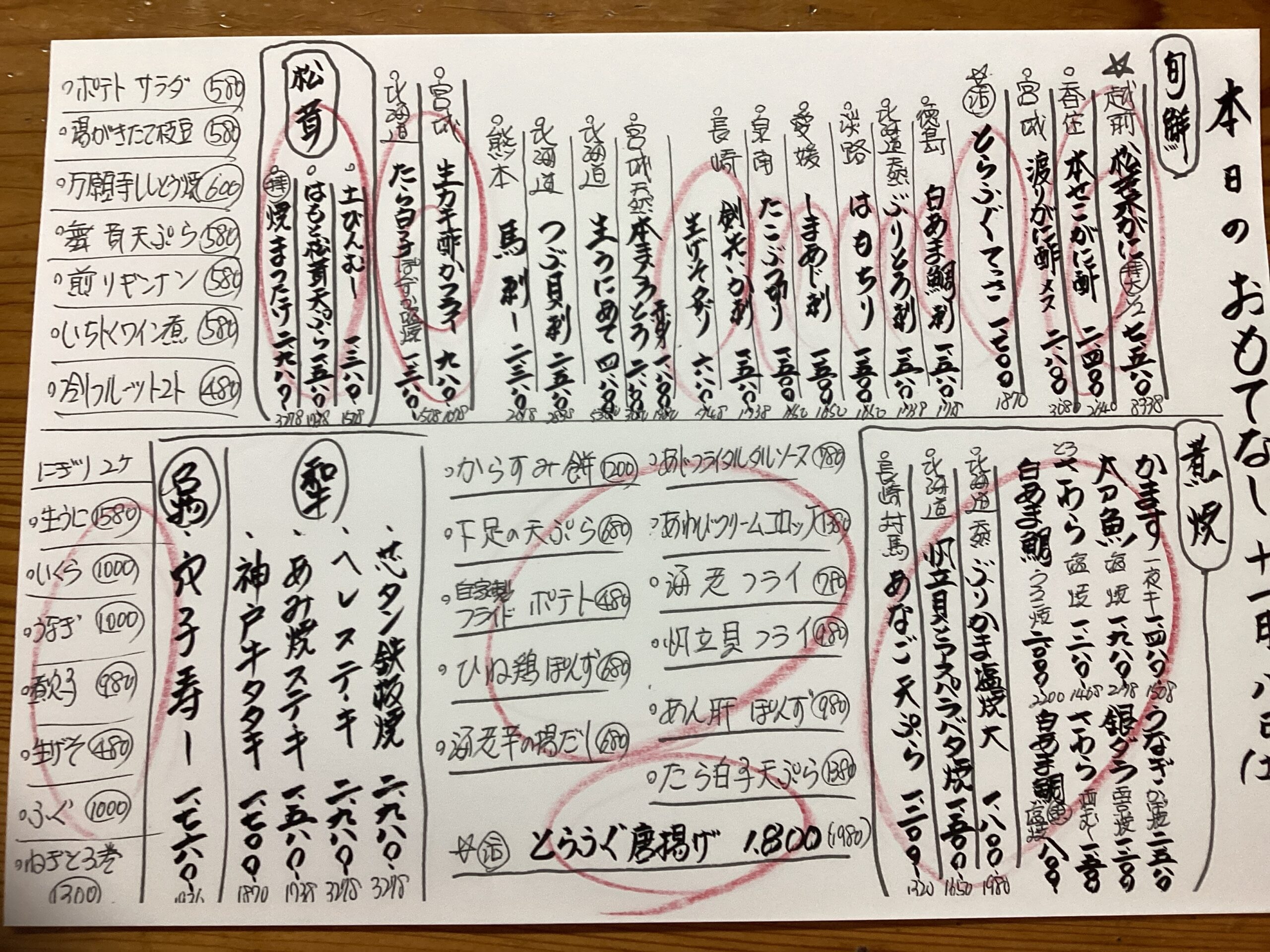 本日のおもてなし