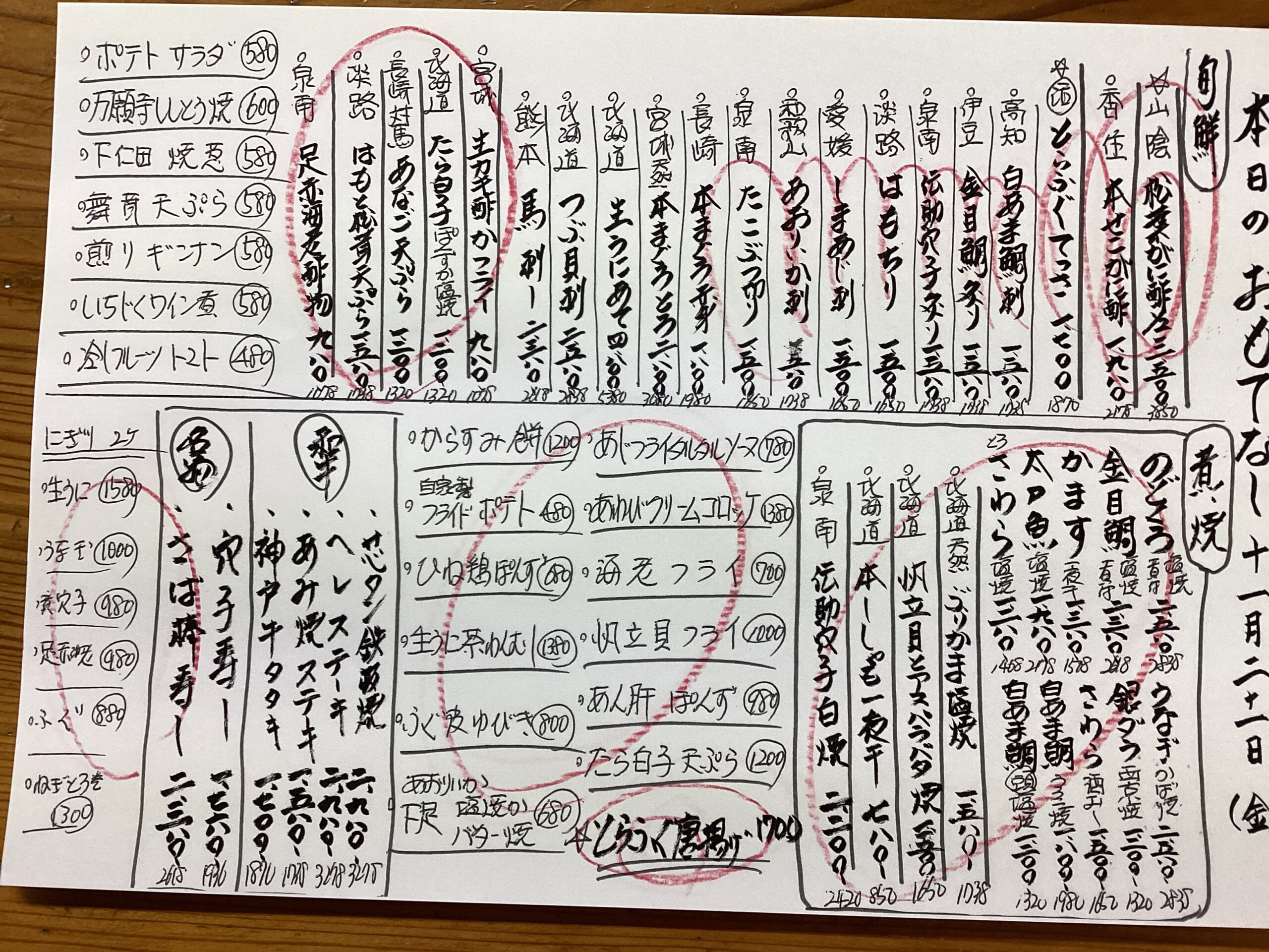本日のおもてなし