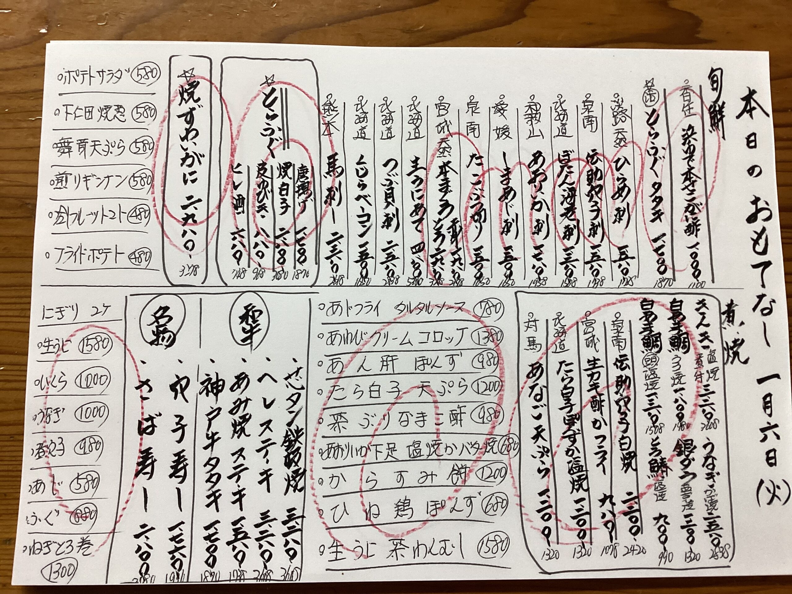 本日のおもてなし