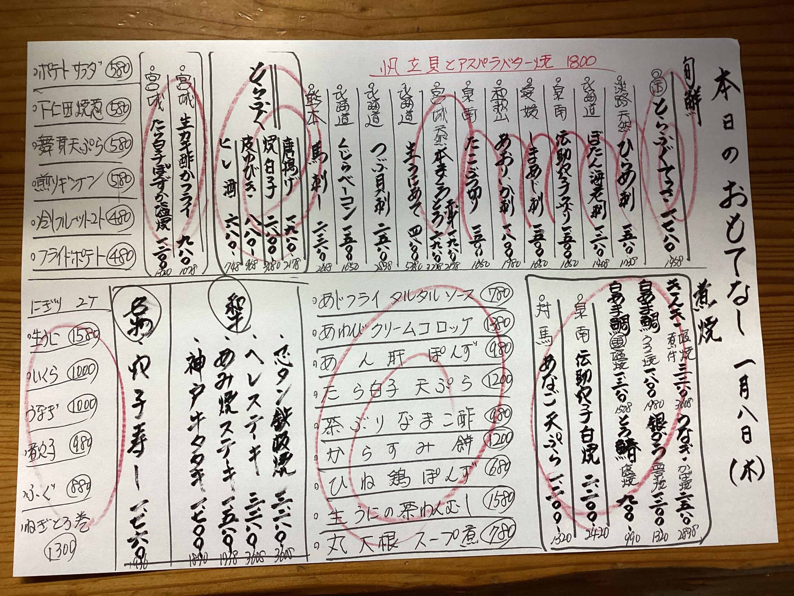 本日のおもてなし